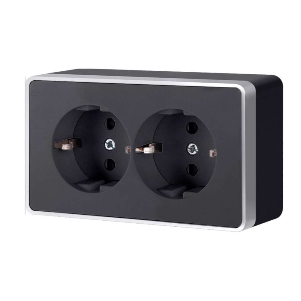 Розетка накладная двойная Werkel Gallant с заземлением и шторками Черный / Серебро W5072134