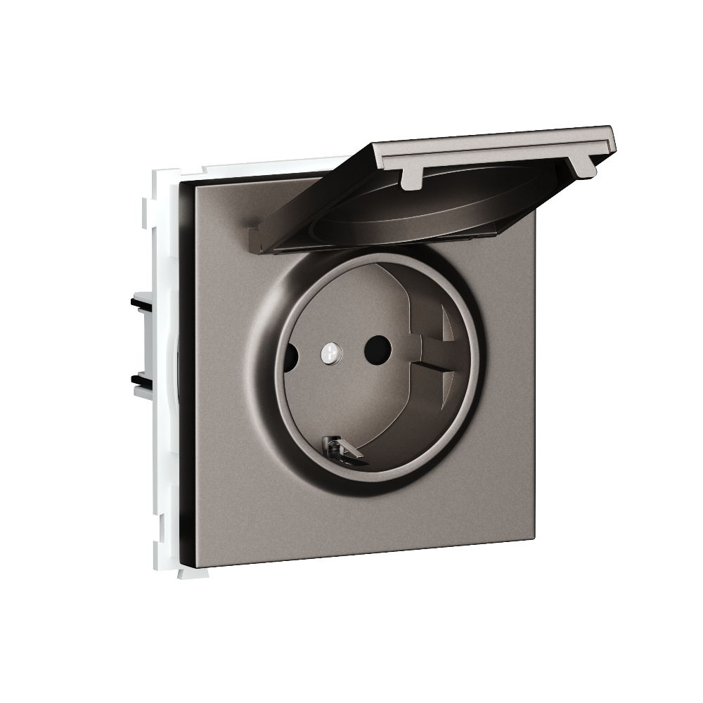 Розетка встраиваемая Donel R98 Schuko с крышкой и заземлением на винтах Сталь матовая DA18800-DA45437