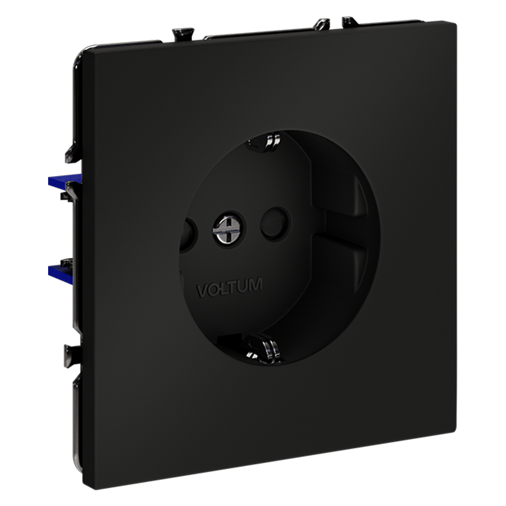 Розетка встраиваемая Voltum S70 с заземлением и шторками Черный матовый VLS040208